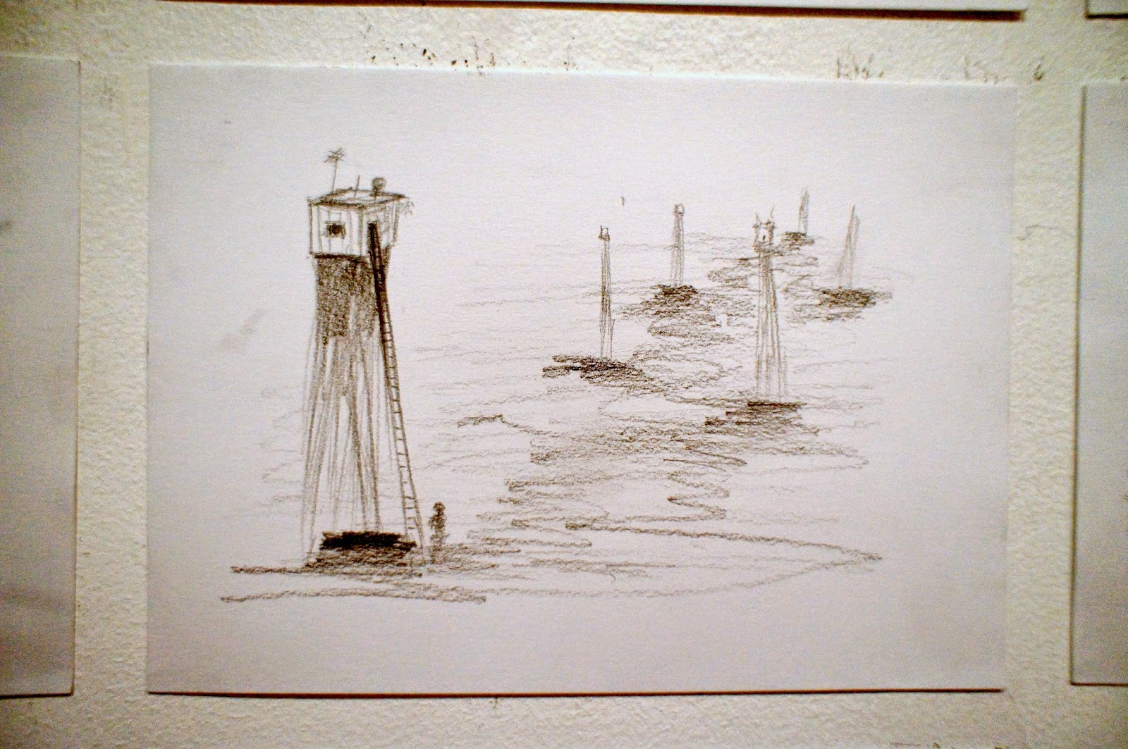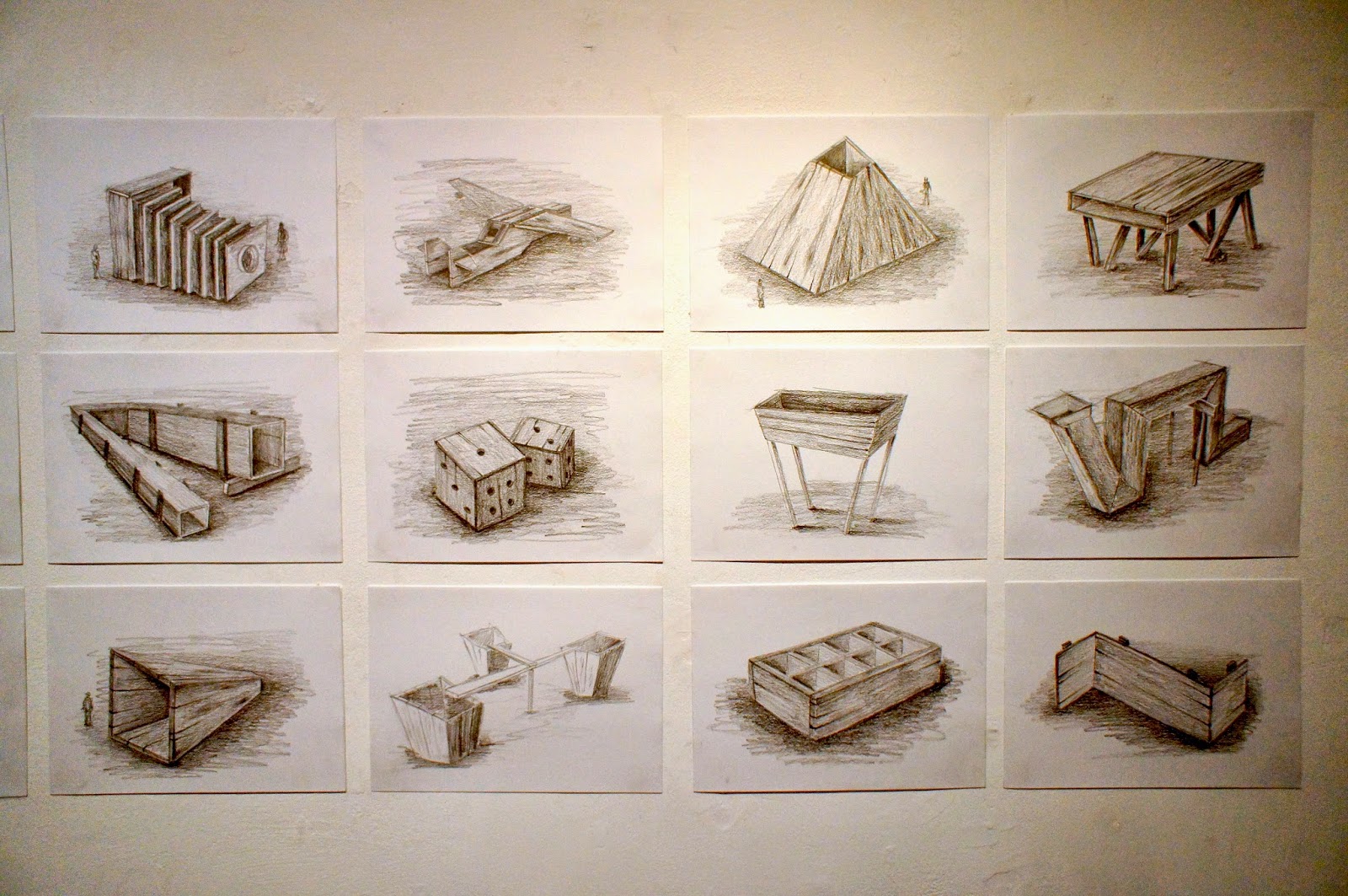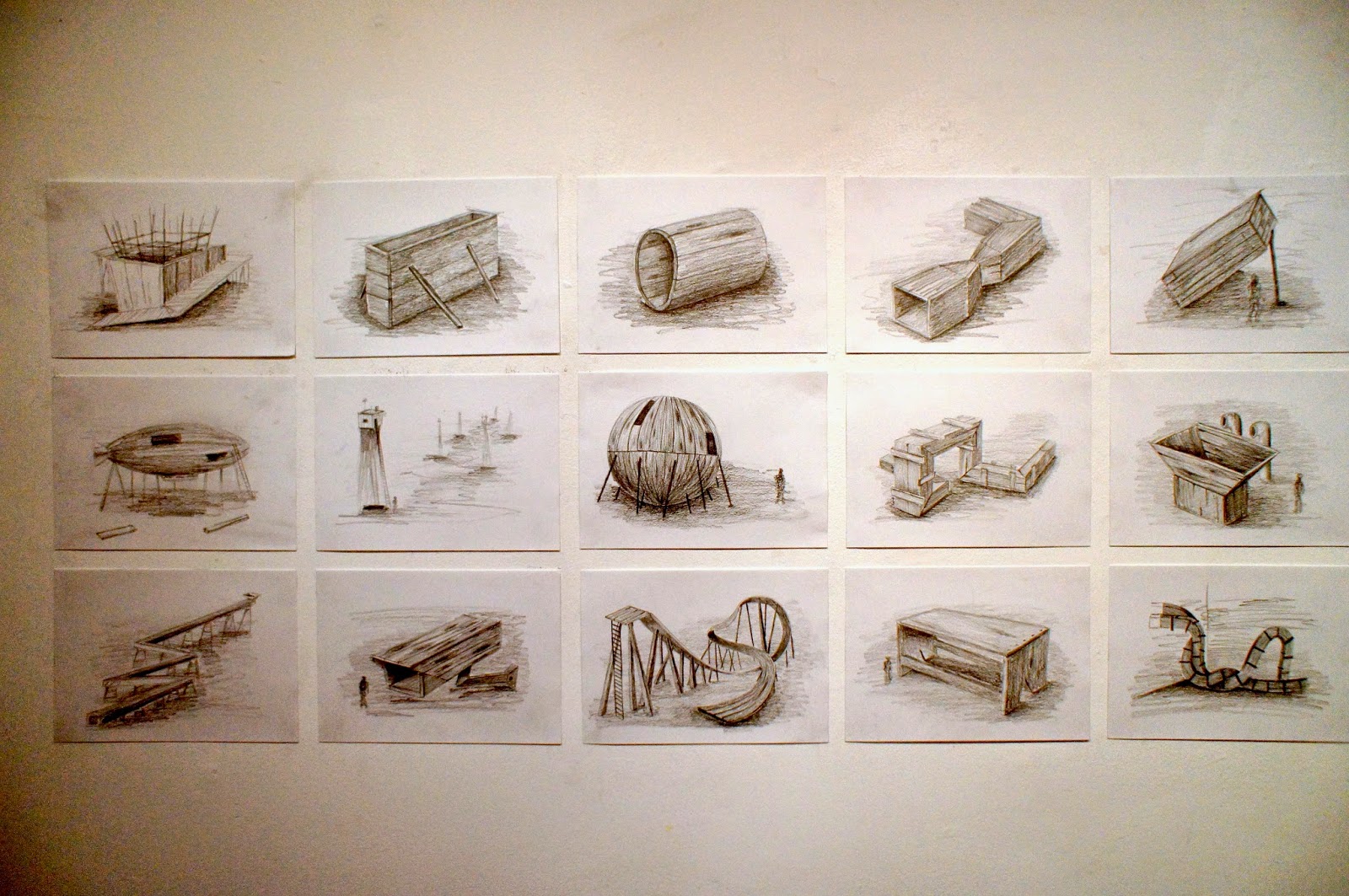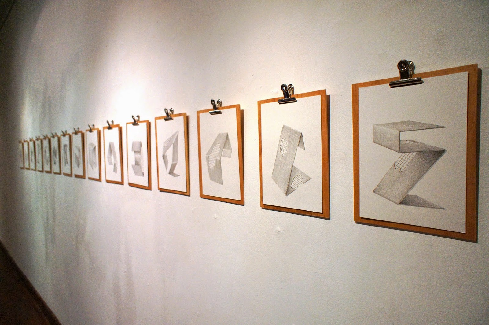 Serie de 15 dibujos hechos a grafito en cartulina sobre tableros apoyamano.