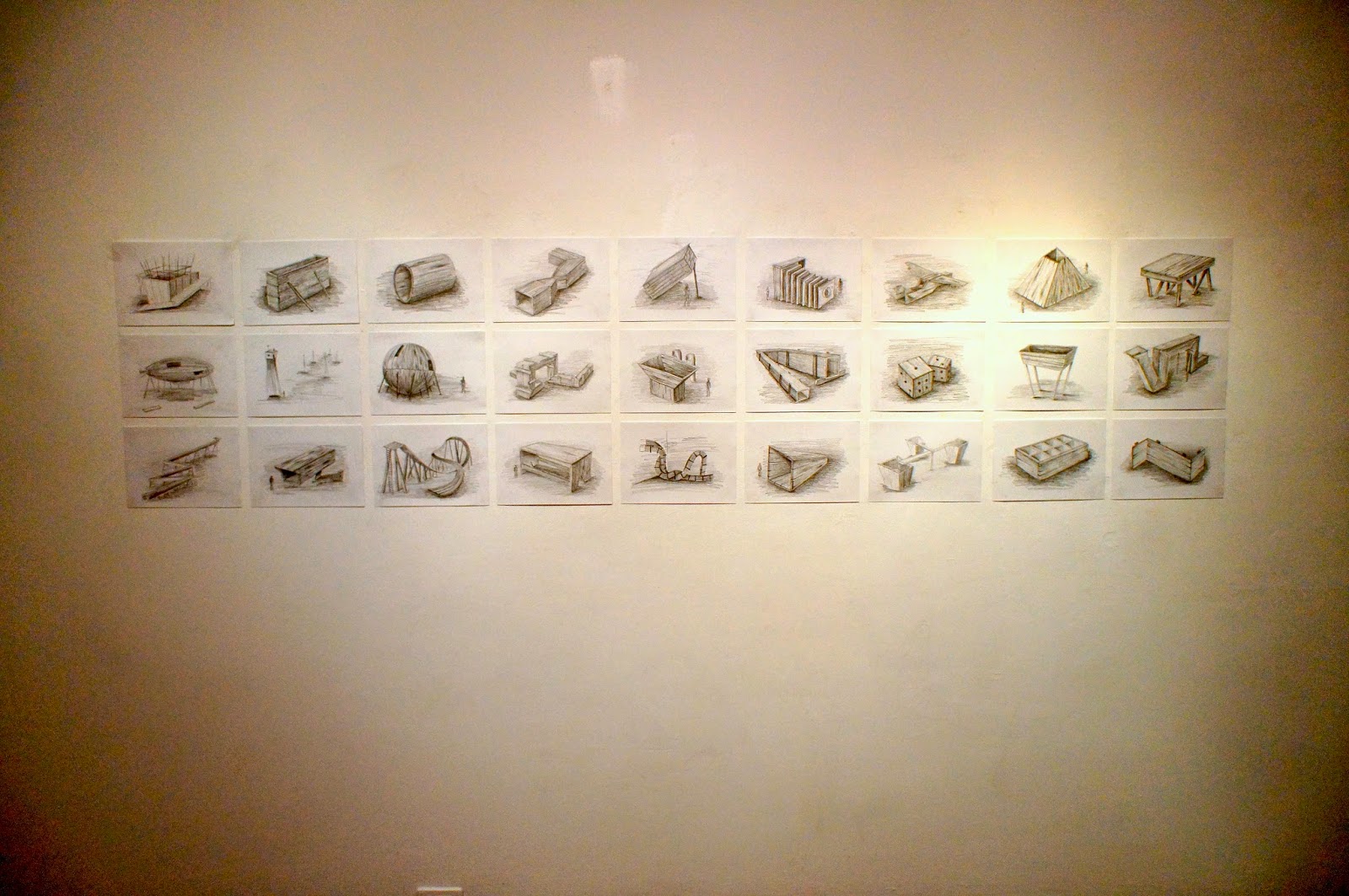 En su segunda muestra personal, Javier Gavilanes apela a su tradición familiar. A su temprana y sostenida relación con la albañilería y la carpintería, de la que afirma no poder alejarse. Sus vivencias en este sentido le sirven de punto de partida y pretexto para la elaboración de obras que remiten a dichos oficios, a las creaciones en materiales como la madera o el metal, a las estructuras típicas en esos territorios de la construcción civil.
