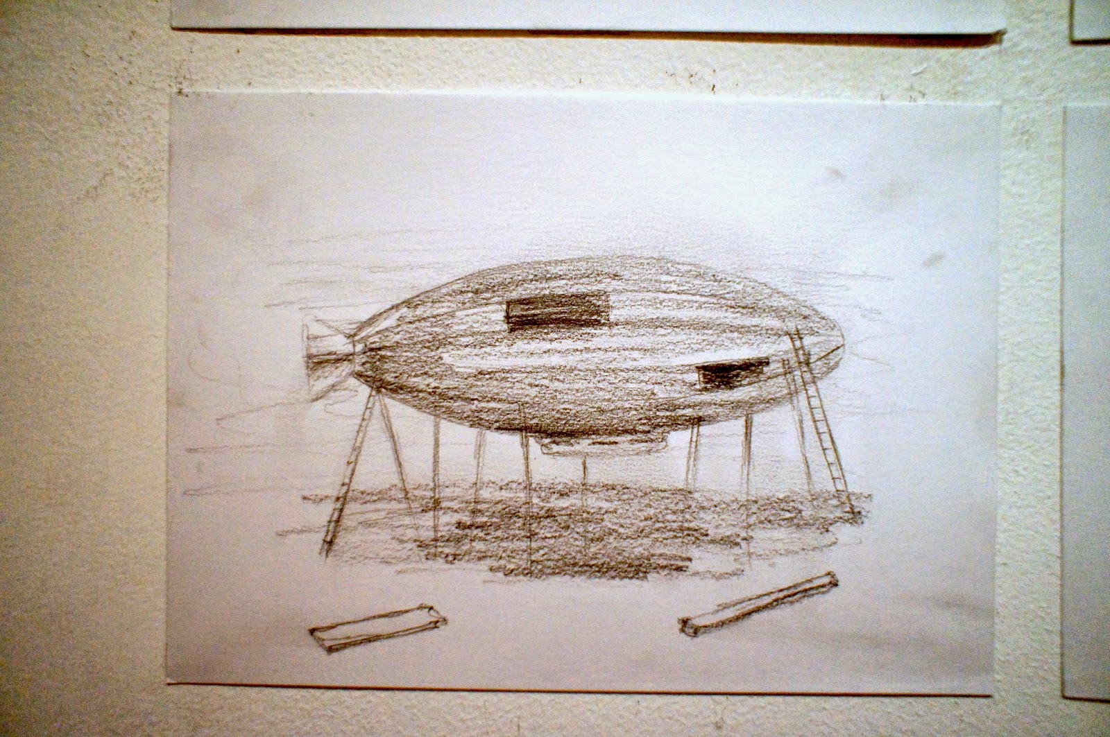 El artista busca y encuentra una fórmula exitosa de acercarnos a un juego de lenguaje propio de las profesiones citadas, de hacérnoslo asequible, de traducir sus potenciales primigenios en actos expresivos de elocuente referencia a su patrimonio personal. Así, el empleo del dibujo de fragmentos constructivos, de objetos físicos, de cintas adhesivas, de metales modelados y forjados, del sudor, han sido pensados en calidad de vehículos curiosos de la comunicación proyectada. Y se logra por esta vía una sugerente traslación a un ámbito del que el artista no puede aislarse, al que debe capacidades y habilidades profesionales, que a su vez se someten a relecturas desde las perspectivas de su más reciente formación.