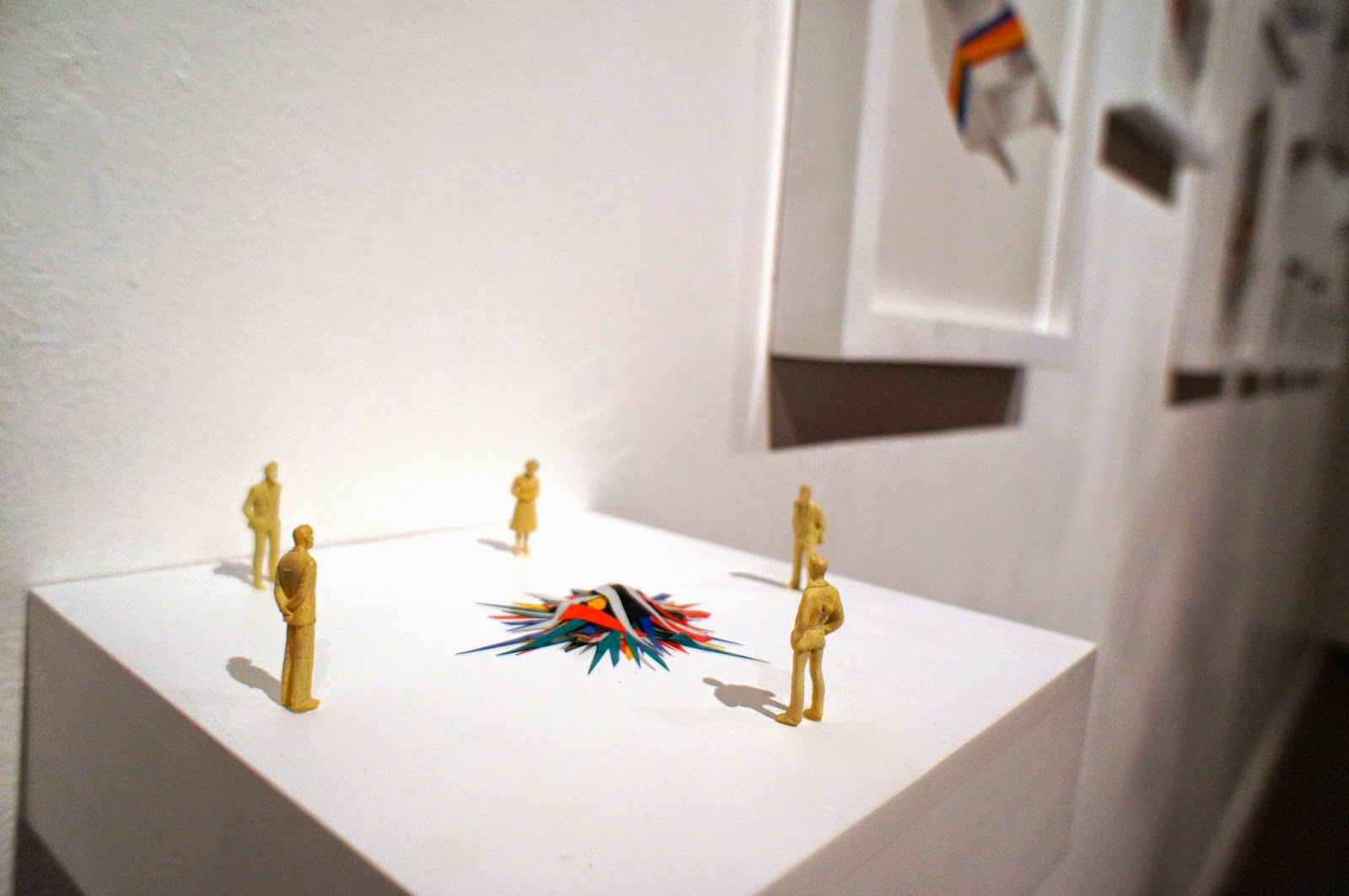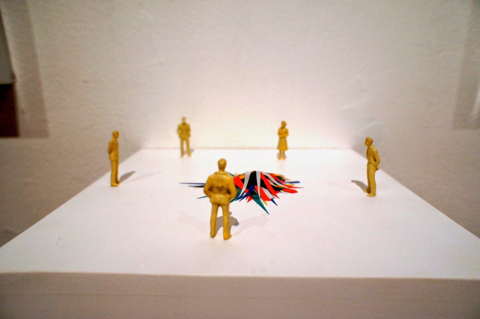 Yo habría omitido las piezas que coquetean con la forma regalo -también harto vistas- , para dejar una muestra redonda que no deja de tener su gracioso epitafio “en cinta” con la pieza homónima en la que hace un guiño emblemático al recurso sexualizándolo; modo sugestivo y curioso que no deja detrás a esas personas nucleares en su trayectoria, sus eternos acompañantes, su familia.